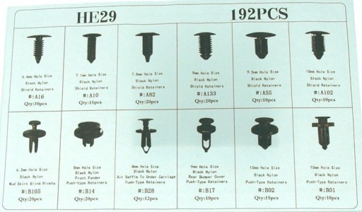 Spinki samochodowe, klipsy, kołki, spinki 6,3-10 mm - 192 szt.