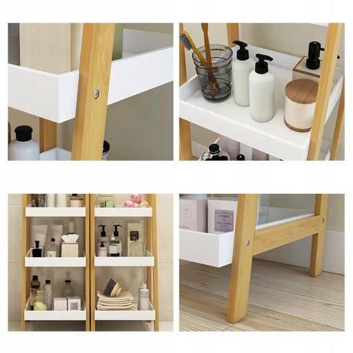 Stelaż a zarazem nogi całego regału wykonane zostały z solidnego drewna bambusowego, który bardzo dobrze wpasowuję się w każde wnętrze.