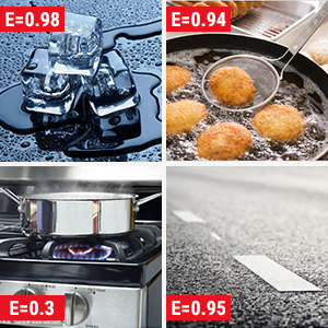 - ± 1,5% precyzji i poziom emisji 0,1 – 1,0 regulowany: wyposażony w nowe kolumny termiczne termometr na podczerwień może dostarczać wartości pomiarowe w zakresie ± 1,5% w ciągu 0,5 s. Za pomocą przycisku MODE można ustawić stopień emisji od 0,1 do 1,0 dla różnych obiektów – dla dokładnych wyników. Często używane wartości emisji można znaleźć w instrukcji obsługi.