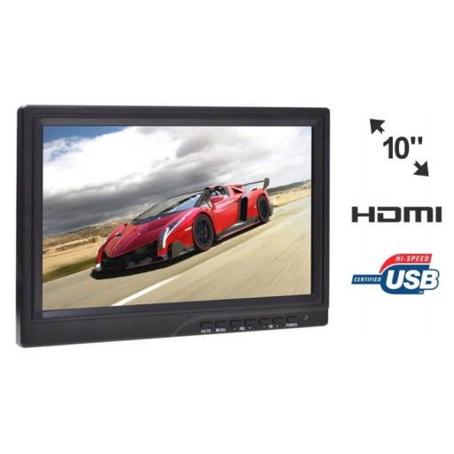 Monitor samochodowy lub wolnostojący LED 10 cali HD HDMI VGA USB AV BNC 12V 230V fajny obraz matrycy: