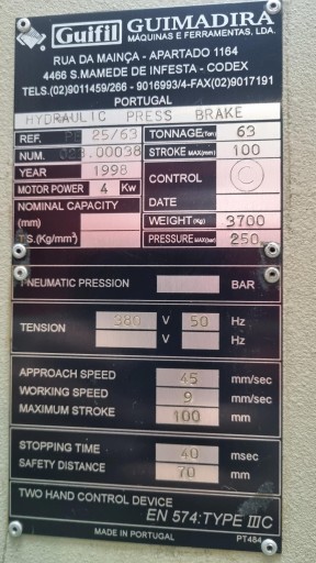 Prasa krawędziowa hydrauliczna f-my Guifil PT typ PE-25-63 rb. 1998.