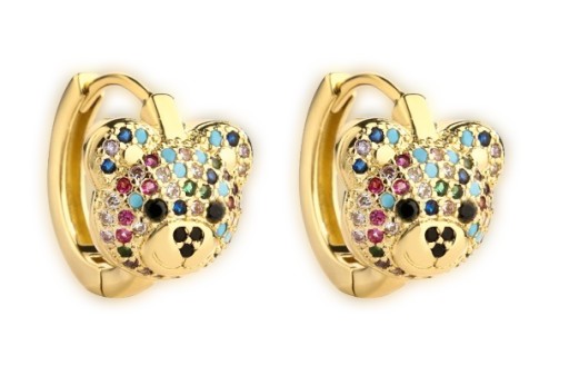 Kolczyki Dziecięce Miś Niedźwiadek Złote Kolorowe Cyrkonie Kółka