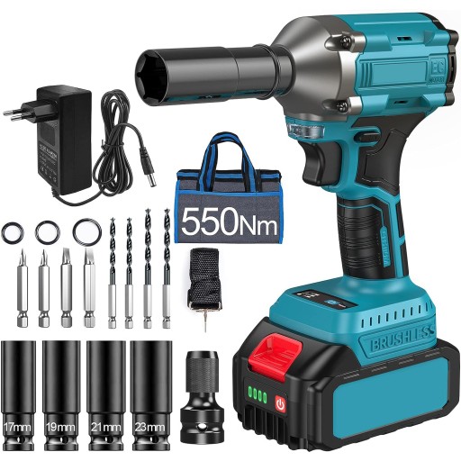 ЭЛЕКТРОПНЕВМАТИЧЕСКИЙ УДАРНЫЙ гайковерт 550 Нм ДЛЯ КОЛЕС 1/2" + НАСАДКИ + АККУМУЛЯТОР