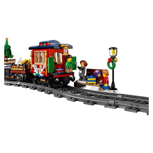 Ten model LEGO może dać całej rodzinie okazję do wspólnej, świątecznej zabawy. Są tu tory tworzące pełen okrąg, peron z ławką i latarnią, lokomotywa (z możliwością rozbudowania o napęd Power Functions), która wydmuchuje z komina dym zbudowany z klocków, węglarka, wagon-platforma z obracającą się choinką, zabawki i prezenty, a także czerwony wagon służbowy z pieczołowicie oddanym wnętrzem i stolikiem. Lokomotywa ma też małe i duże kółka w kolorze czerwonym, a cały pociąg jest przyozdobiony zielonymi wieńcami, łańcuchami światełek i białymi elementami drzew.