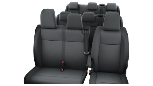 - I rząd: Fotele przednie 2+1 dwuczęściowe pasy z siedziska i oparcia podłokietnik kierowcy zagłówki 3