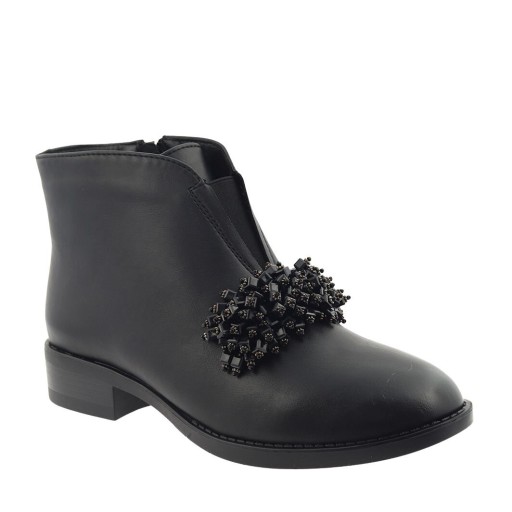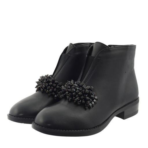 ЧЕРНЫЕ БОТИНКИ НА НИЗКОМ КАБЛУКЕ С ДЕКОРАТОМ SABATINA DM23-19 R 39