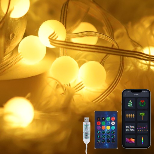 Łańcuszek świetlny RGB LED USB➡40LED 5m➡IP65 Wodoodporny➡z pilotem na podczerwień➡Tryb muzyczny➡Timer➡Efekt śledzenia➡do dekoracji wnętrz