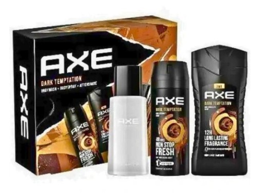 Spraw radość sobie lub swoim bliskim zestawem męskich kosmetyków Axe Dark Temptation pielęgnacyjnych.