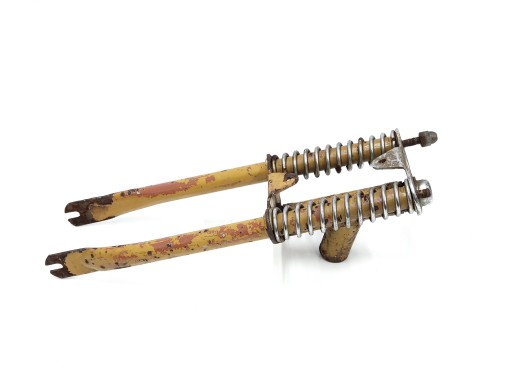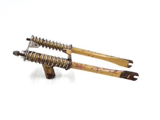 Widełki ala amortyzator 16 cali do rowerów Romet Universal Polo Cross itp. Kolor: żółty Długość całkowita: 350 mm WADA: stery są zacięte, brak jednej ze śrub.