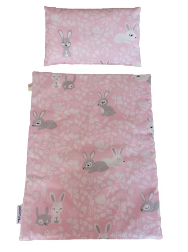 Zestaw jest dwustronny, zarówno kołderka jak i poduszka wypełnione są antyalergiczną, puszystą włókniną.