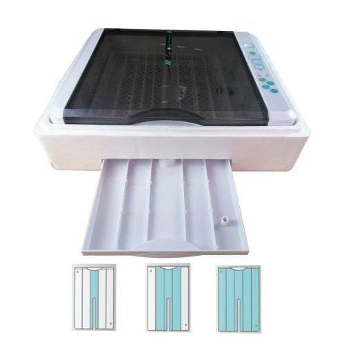 Stopień wilgoci wewnątrz komory lęgowej reguluje się poprzez uzupełnienie kanalików z wodą (wysuwana szuflada) - uzupełniamy wodę bez konieczności otwierania pokrywy inkubatora i jednoczesnym wychładzaniu urządzenia.