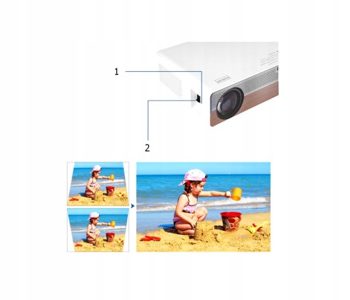 - Korekcja trapezowa obrazu Keystone 4D- Prosta regulacja ostrości i nachylenia obrazu za pomocą pokrętła, dodatkowo systemowo możesz regulować kąt wyświetlania obrazu dzięki czemu projektor może stać nawet bokiem do ściany i nadal wyświetlać właściwie obraz,