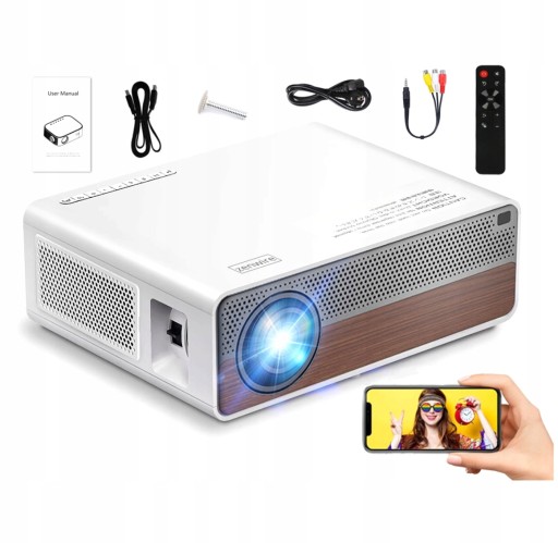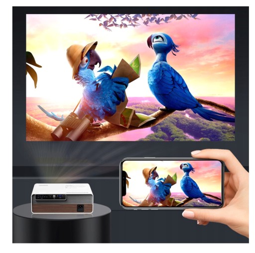 - Wbudowane WiFi 2.4/5 GHz ze wsparciem Miracast oraz Airplay - oglądaj filmy ze swojego smartfona, tableta lub komputera bez konieczności łączenia projektora kablami bezprzewodowo. Działa zarówno z Apple IOS, Android jak i Windows. Wsparcie dla WiFi 5 GHZ znacząco wzmacnia jakość i stabilność sygnału.