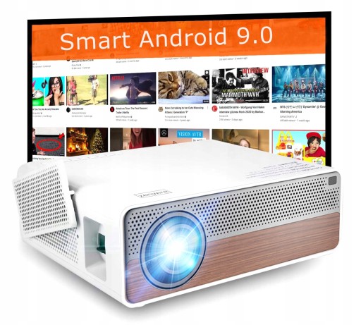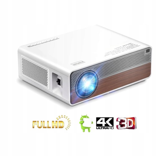 - Projektor z systemem Android 9.0 - korzystaj ze wszystkich swoich ulubionych aplikacji jak w Smart TV bez konieczności używania dodatkowych urządzeń jak np. Netflix, HBO MAX, Amazon Prime, Disney+, Spotify, Youtube i wiele innych,