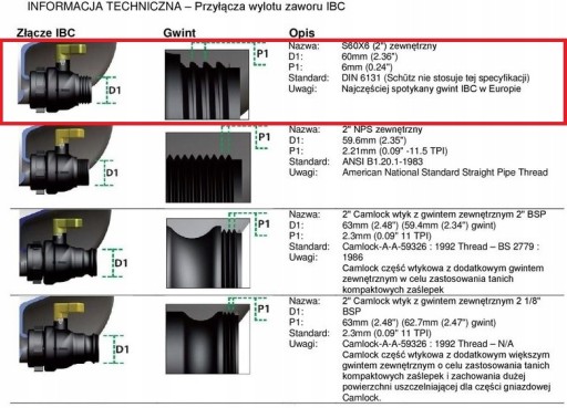 - Korek plastikowy (NOWY) z grubym gwintem trapezowym 2”cale 61mm (S60x6) pasujący do większości kanistrów 20L 25L 30L 60L oraz Zbiorników IBC (Mauser) 600L 1000L