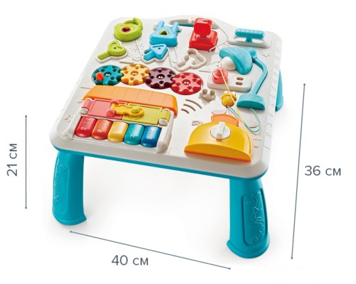 ❇️ Zdolności manualne? Oczywiście! Maluch może bawić się, układając, przekładając i manipulując różnymi elementami stolika, rozwijając jednocześnie sprawność rąk.