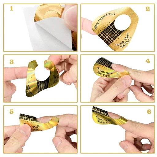 - Wygodne stosowanie: Formy są łatwe w użyciu - wystarczy wsunąć je pod naturalny paznokieć i zagiąć wzdłuż osi.