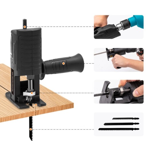Oferujemy Państwu przystawkę do wiertarki bądź wkrętarki, która przemieni nam się na piłę szablastą to świetny sprzęt do szybkiego cięcia w domu i w plenerze. Piła lisi ogon uzbrojona we właściwy brzeszczot zastąpi piłę ręczną lub inne pilarki elektryczne. Poradzi sobie z drewnem, metalem, tworzywami sztucznymi, itp.