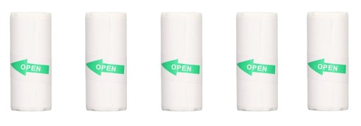 Zestaw 5 rolek papieru samoprzylepnego termicznego do mini drukarek termicznych z mocnym klejem, łatwy do przyklejenia.