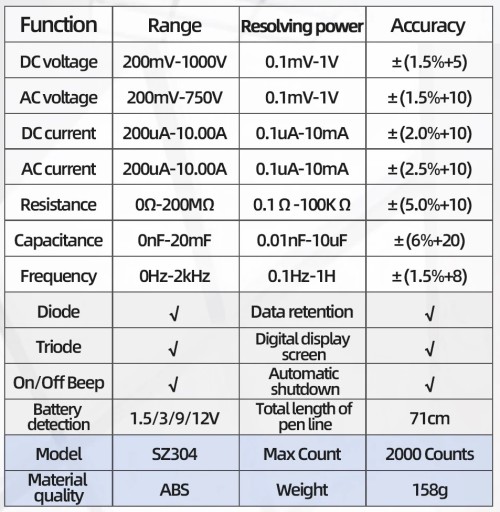 Цифровой мультиметр ANENG SZ304 с функцией HOLD