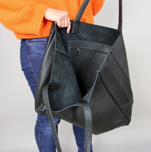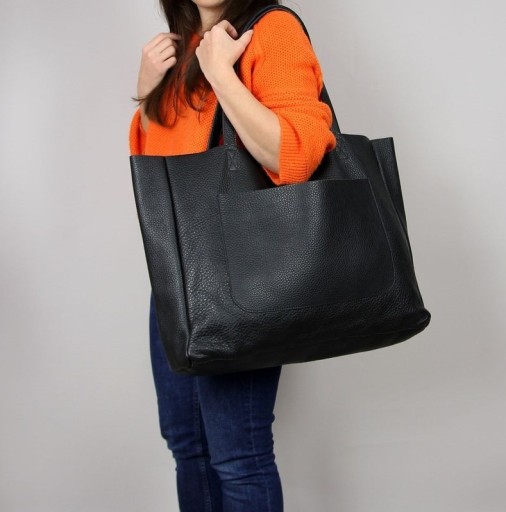 Ta duża czarna torba wykonana jest z wysokiej jakości włoskiej skóry. Torebka jest bardzo pojemna i praktyczna. Wykonana z dbałością o każdy szczegół. Świetnie sprawdzi się jako torba na zakupy.