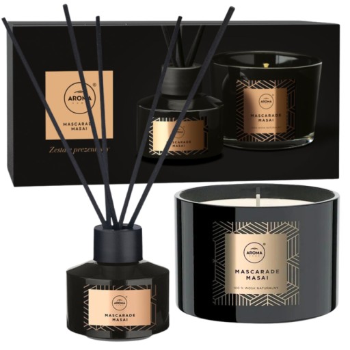 ZESTAW PREZENTOWY UNIQUE MASCARADE MASAI PATYCZKI ZAPACHOWE + ŚWIECZKA 2W1