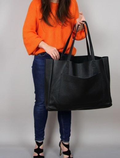 Ta duża czarna torba wykonana jest z wysokiej jakości włoskiej skóry. Torebka jest bardzo pojemna i praktyczna. Wykonana z dbałością o każdy szczegół. Świetnie sprawdzi się jako torba na zakupy.