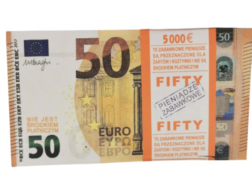 50 EURO banknoty do zabawy i nauki plik 100sztuk + gratis trzy sztuki banknoty euro o nominale 5,10 i 20 (ostatnie zdjęcie)