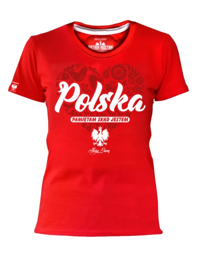 Koszulka damska Polska - pamiętam skąd jestem - Czerwona | Rozmiar: 3XL