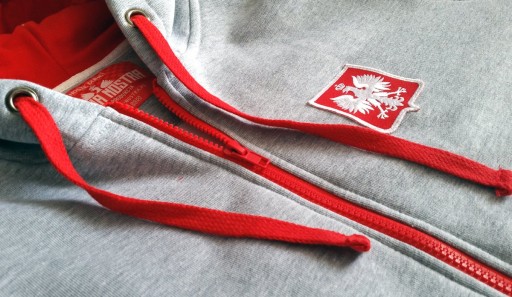 Subtelny przekaz oraz duma jaką wyraża herb Polski na piersi, nadają szczególnego charakteru prezentowanej bluzie. Herb wykonany został jako aplikacja haftowana, ze starannością oddając kształt białego orła w koronie, na czerwonej tarczy. Ciepła i wygodna bluza, a zarazem jasne przesłanie, to idealne połączenie dla każdego komu bliska jest dewiza - Bóg, Honor, Ojczyzna i miłość do Polski. Rozpinana bluza z kapturem to idealna propozycja zarówno do codziennego użytku w sezonie wiosennym oraz jesienno-zimowym, ale również na wyjątkowe wydarzenia jak mecze polskich reprezentacji sportowych. Z całą pewnością w naszej bluzie wyróżnisz się w biało-czerwonym tłumie!