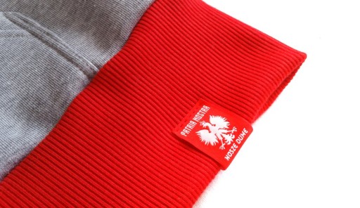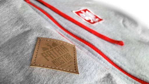 Bluzę urozmaicają przede wszystkim czerwone elementy, takie jak: ściągacze, zamek, sznurki oraz wnętrze kaptura, dodatkową akcentując jeden z kolorów naszej narodowej flagi. Ponadto standardowo wszyta jest biała tasiemka wzmacniająca kołnierzyk, a także firmowe dodatki: 2 żakardy i elegancka naszywka skórzana na ramieniu. Bluza posiada specjalny, wykonany od podstaw krój, komfortowo układając się na ciele. Uszyta została z najwyższej jakości materiałów od polskich dostawców