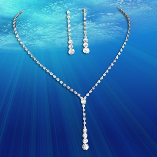 Naszyjnik i kolczyki są platerowane srebrem i wysadzane cyrkoniami najwyższej jakości o szlifie diamentowym