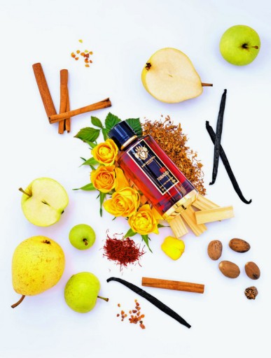 Kusząca kompozycja otwiera się bogatym i intrygującym spotkaniem drogocennego szafranu z dymnym kadzidłem i pikanterią cynamonu. Obok nich pojawia się gałka muszkatołowa opadająca na szlachetny oud. Nie zabrakło również soczystej białej brzoskwini i chrupiącej cząsteczki zielonego jabłka. W sercu rozbrzmiewa ziemisty akord paczuli stonowany intensywnością jaśminu. W tle dominuje tytoń zmieszany z drzewnymi nutami. Całość zanurza się w balsamicznych odcieniach białego piżma, wzbogaconego egzotyką wanilii i zielenią wetywerii, wzmocnionej żywiczną ambrą.
