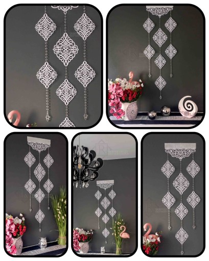 Zestaw zawiera 3 szt. ażurów (1szt. duża 30x22 cm i 2szt mały 20x15 cm) całość o długości 150 cm.