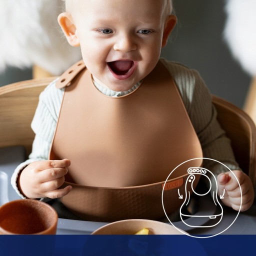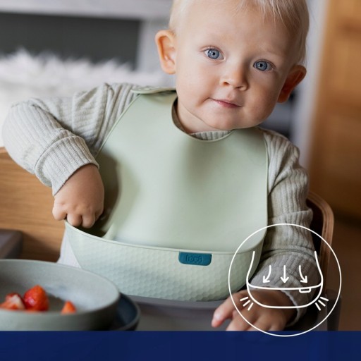 Regulowane zapięcie oraz ergonomiczny kształt śliniaka, a w szczególności jego wyprofilowane boki zapewniają swobodę ruchów. Produkt ma oryginalny design, dzięki unikalnej strukturze kieszonki, a dodatkowo jest łatwy w czyszczeniu i nadaje się również do mycia w zmywarce.