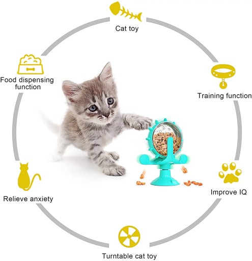 【Multifunctional Cat Leaking Toy】: This is a multifunctional cat leaking toy. Remove the soft rubber stopper on the top and add cat food or snacks directly. Cat can rotate the toy by a light push.The leaking hole will drop food when the main part rotating, to attract cat's interest of playing.