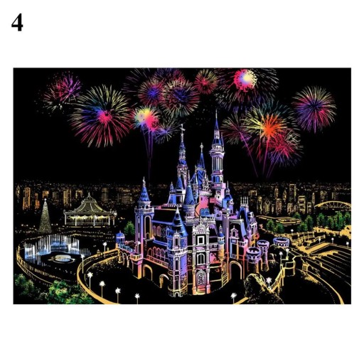 Tower Castle Windmill Balloon Scratch Art Painting Drawing Paper Kids Funny Toy