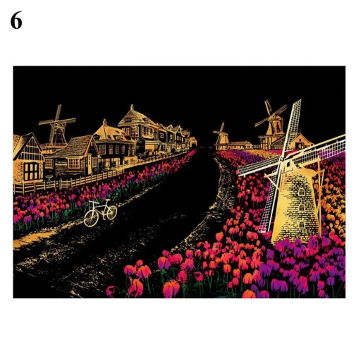 Tower Castle Windmill Balloon Scratch Art Painting Drawing Paper Kids Funny Toy