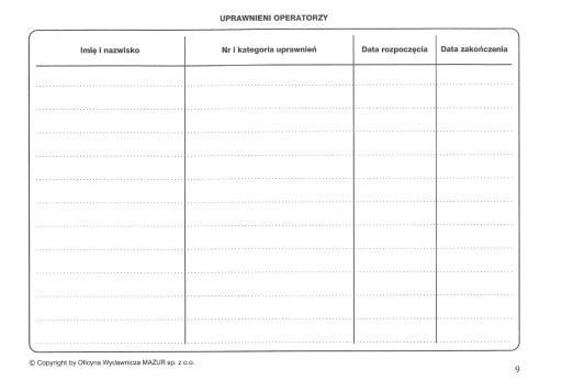 (Przepisy, Dane urządzenia i właściciela, Uprawnieni operatorzy i konserwatorzy)