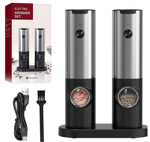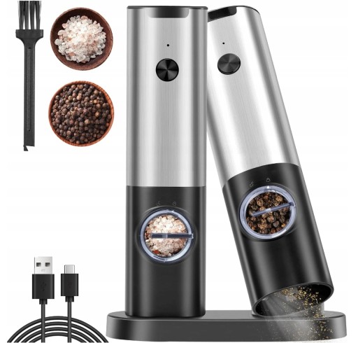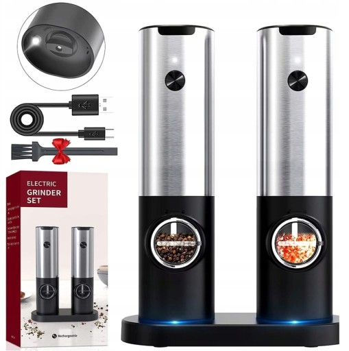 Elektryczny zestaw młynków do soli i pieprzu z ładunkiem, młynek do soli ze stali nierdzewnej z wynikami