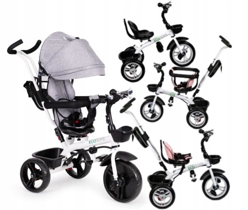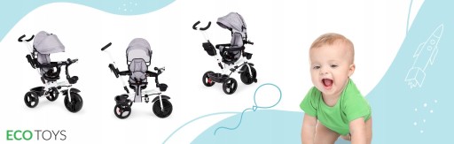 Rowerek ECOTOYS łączy w sobie wiele praktycznych rozwiązań, które zapewnią twojemu dziecku wygodną i bezpieczną zabawę. Rowerek posiada miękkie komfortowe oparcie, dzięki któremu maluch będzie siedział wygodnie a pasy i barierki zabezpieczą go przed wypadnięciem z siedziska. Składany daszek ochroni przed deszczem i słońcem. Specjalnie wyprofilowana rama oraz obrotowe siedzisko ułatwi wsiadanie najmłodszym dzieciom.