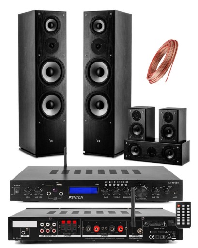 Zestaw stereo z wzmacniaczem pięciokanałowym ustawiony w pokoju, salonie spisuje się bardzo dobrze w konfiguracji stereo oraz w 5.1. Zestaw polubią szczególnie miłośnicy mocnej głośnej muzyki w którym bass pełni funkcję rytmiczną jak i miłośników kina domowego wysokiej jakości.