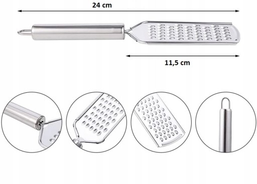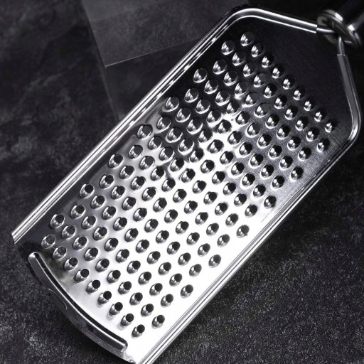 Wiele zastosowań - Tarka do sera może zetrzeć cytrynę, limonkę, cytrusy, parmezan, imbir, kokos, pomarańczę, czekoladę, a nawet gałkę muszkatołową, cynamon lub czosnek. Ser przetarty szybko się topi, a czekolada staje się puszysta