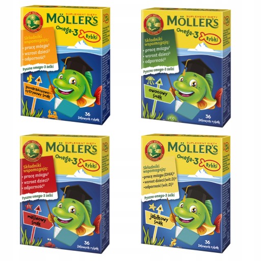 _Möller's Omega-3 Rybki żelki z kwasami omega-3 i witaminą D3 dla dzieci Malinowe 36szt