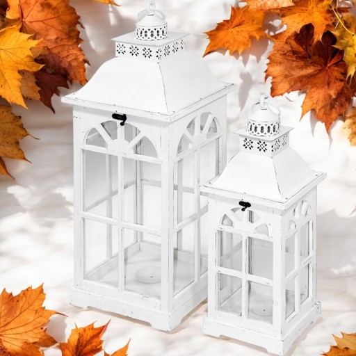 Lampiony wykonane z drewna, celowo postarzane w romantycznym stylu. Ten zestaw stanie się nietuzinkową dekoracją wnętrza czy tarasu. Może być używany z świecami, łańcuchami świetlnymi led i innymi dekoracjami które mogą zmieniać się wraz ze zmianą sezonu, pory roku czy okoliczności. Świetny pomysł na wspaniały prezent