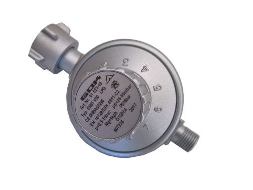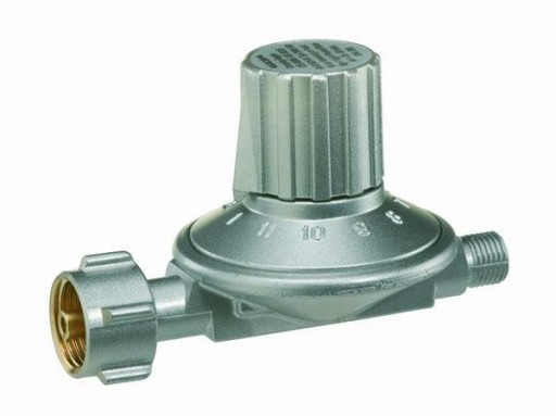 Jedenastostopniowy regulator ciśnienia do podłączenia do butli z ciekłym gazem. Nastawny. Ustawienie ciśnienia 25 - 50 mbar.