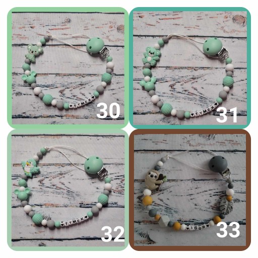 Z obu stron zawieszka jest tak zabezpieczona, aby koraliki nie miały możliwości na zsunięcie się, co sprawia, że zawieszka jest bezpieczna dla dziecka. Zawieszki wykonane są z najwyższej jakości materiałów, które posiadają wszystkie niezbędne atesty, wykonane są z bardzo wytrzymałych tworzyw, nie zawierają toksycznych substancji typu BPA, PVC, latex itp...