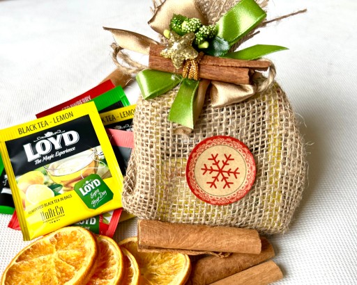 - zestaw 5 herbat w różnych smakach w opakowaniu świątecznym,