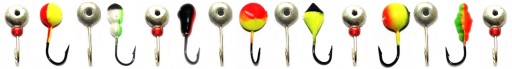 SIEDEM MORMYSZEK W RÓŻNYM KSZTAŁCIE I KOLORZE - WYBÓR LOSOWY - MOCOWANIE BOCZNE.