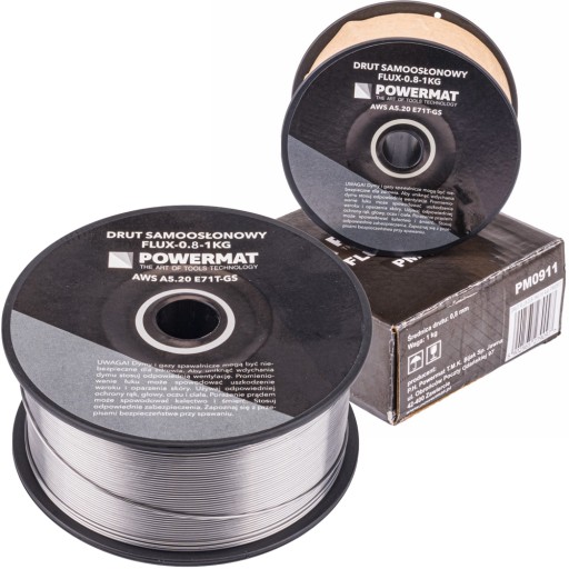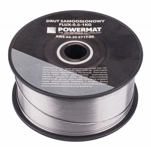 Drut proszkowy samoosłonowy fi 0,8 mm / 1 kg E71T-GS firmy Powermat przeznaczony jest do spawania stali węglowych zwykłej i podwyższonej wytrzymałości nie przekraczającej 510 MPa.